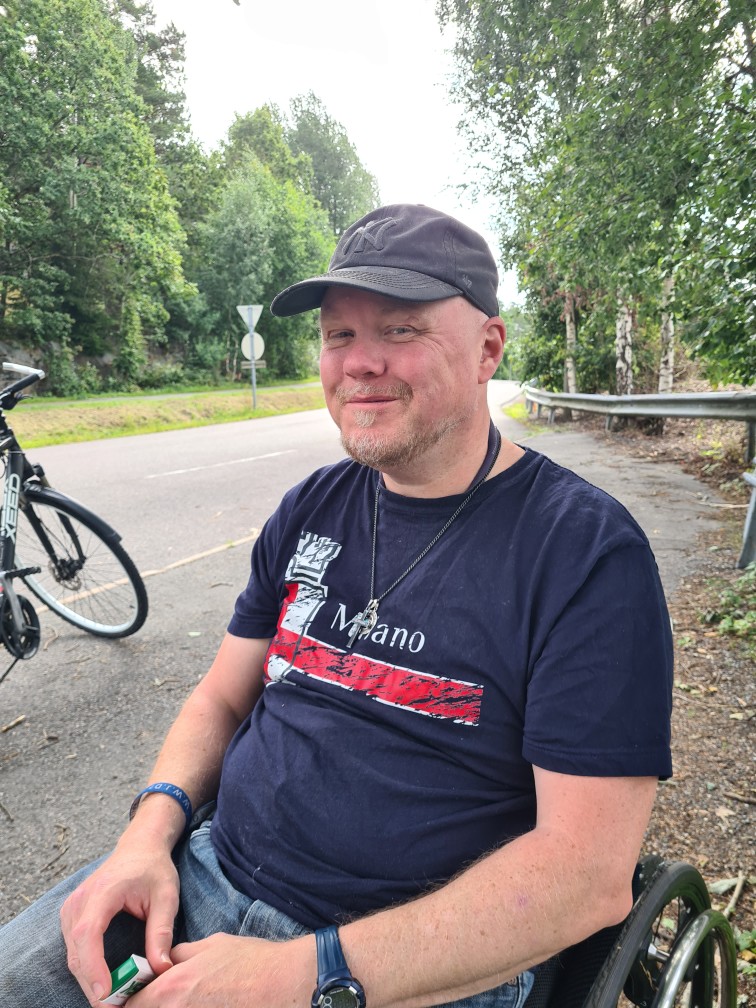 Etter en ryggmargsskade i 1997 har Thomas Jystad sittet i rullestol. Han har lært seg å leve med utfordringene, men er alltid på utkikk etter enkle og trygge måter å ta vare på kroppen sin. Nå bruker han Helsebelte og nakkebelte – og anbefaler det varmt til andre, spesielt eldre.